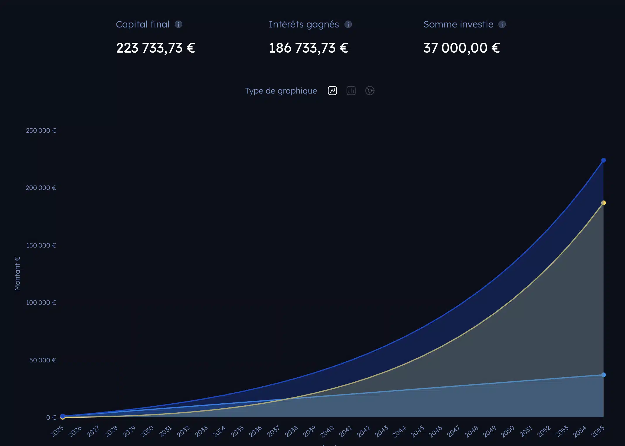 Les intérêts composés ne sont pas une formule magique neutre. Ils amplifient les écarts de départ. Si vous partez petit, vous progressez lentement, même avec un excellent rendement. Prenons un exemple simple :
