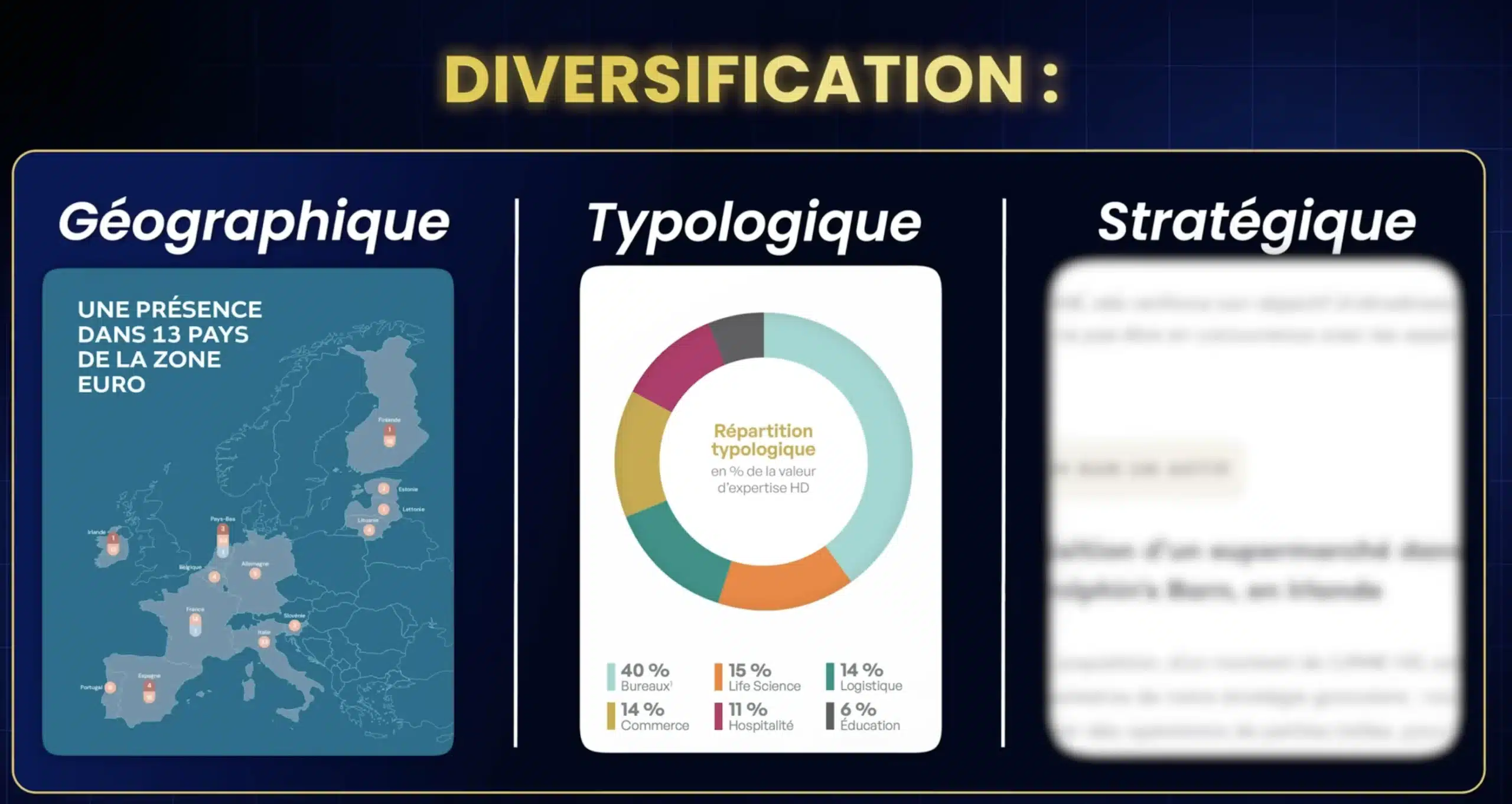 • La diversification géographique d’abord, avec une exposition à la France, mais aussi à d’autres pays européens, voire au-delà.