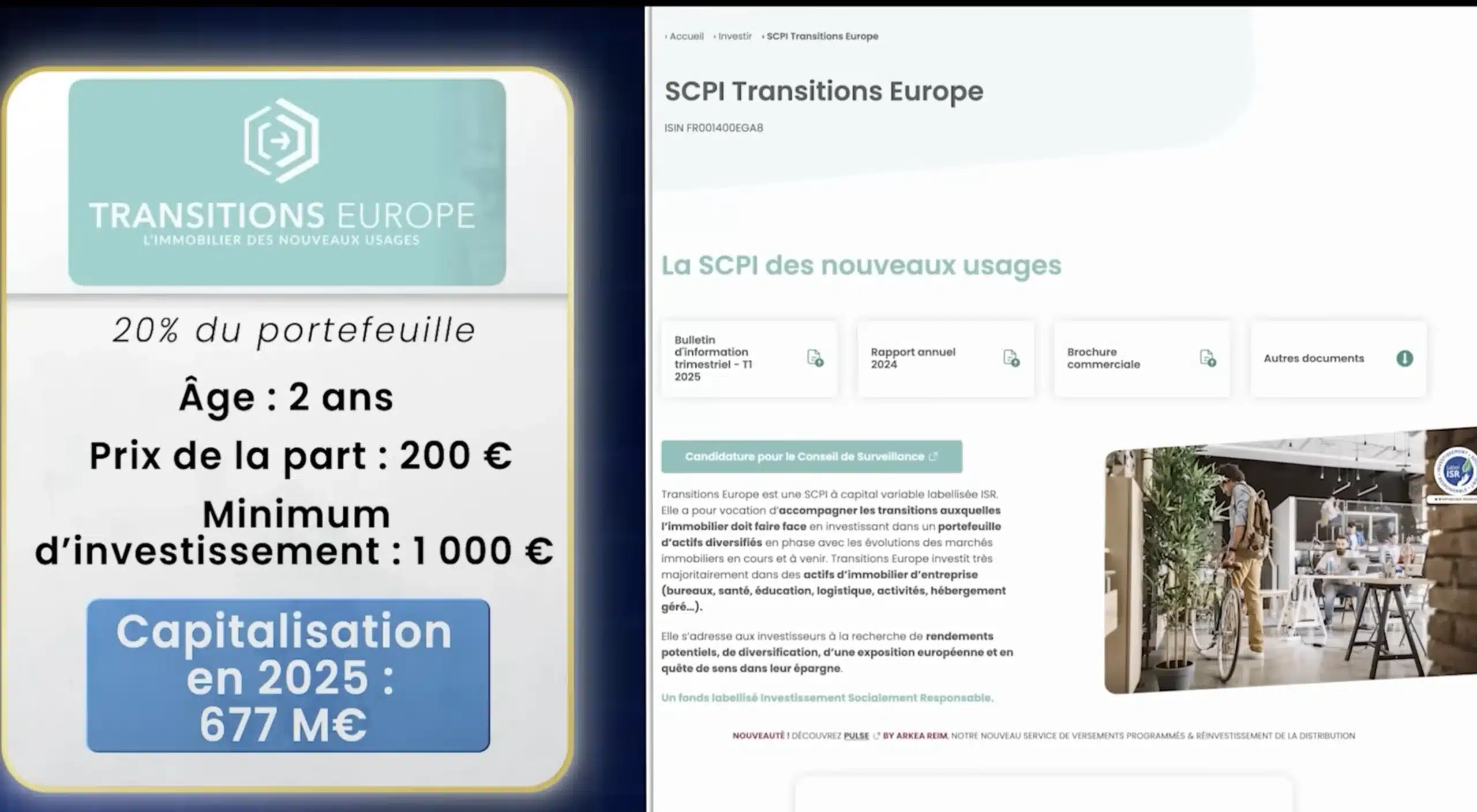 Pour compléter la stratégie ISR et renforcer la diversification du portefeuille, nous intégrons la SCPI Transition Europe.